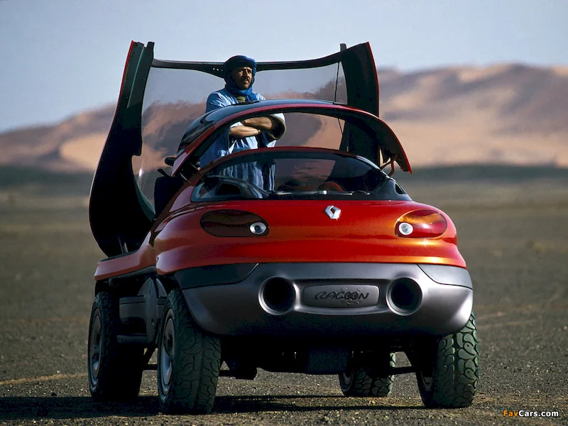 Designed in 1992, the three-seat Renault Racoon was far ahead of its time. It featured computer controls, satellite navigation, rear-view cameras, and rain-dispersing glass.