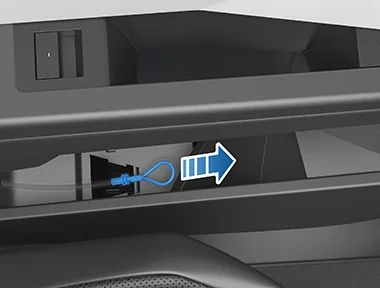Pull the cable toward the center of the vehicle to unlatch the door.