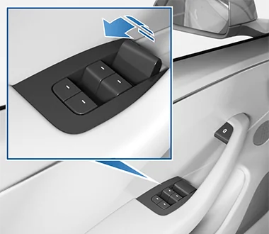 In the unlikely event that the Model S loses power, pull up on the manual door release lever located in front of the window switches to open the front door.