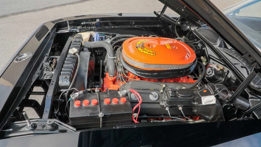Mechanically, the A833 transmission is numbers-matching. The 426 Hemi under the hood, however, is a period-correct replacement block sourced over the counter back in the day. The car has been professionally restored, with body and paint rated at 9 out of 10. It also retains the proper K-member with skid plate and the Dana 60 rear axle.
