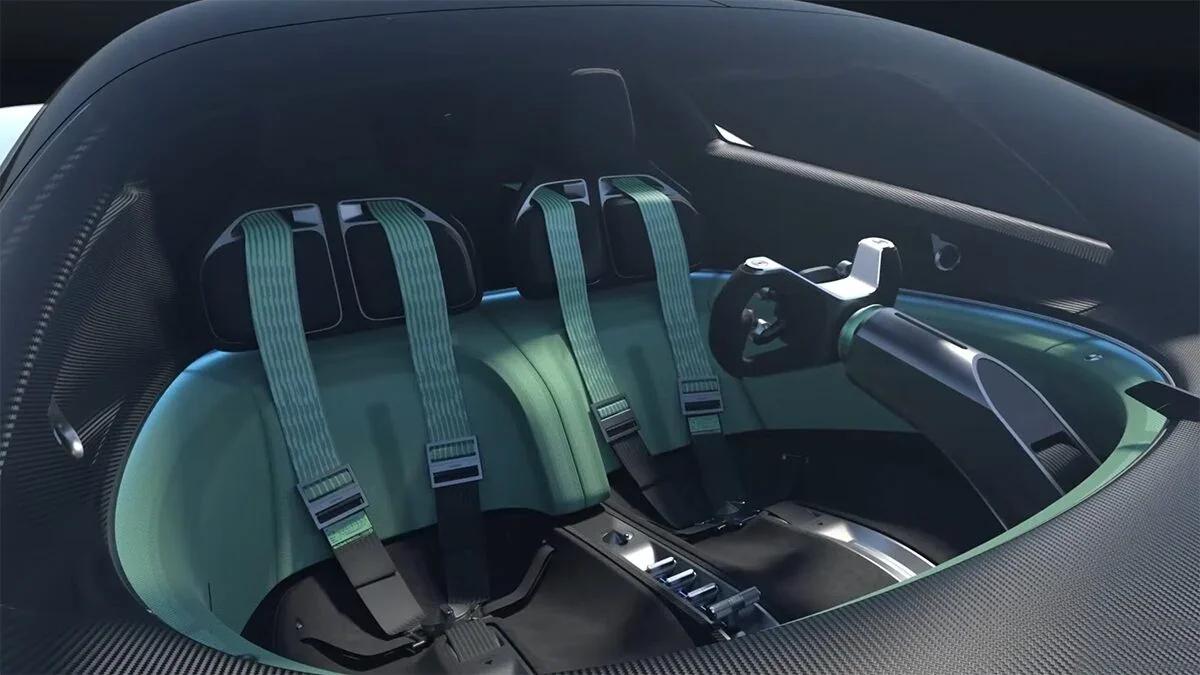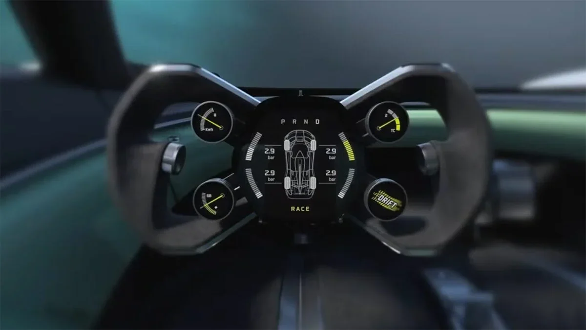 A butterfly-style steering wheel ensures maximum control behind the wheel. A panoramic display spans the entire dashboard, completely replacing physical buttons. The seats are designed on the "cocoon sofa" principle—they envelop the driver and passenger, ensuring comfort under high G-forces. The interior transforms into a symbiosis of a racing cockpit and a digital living room.