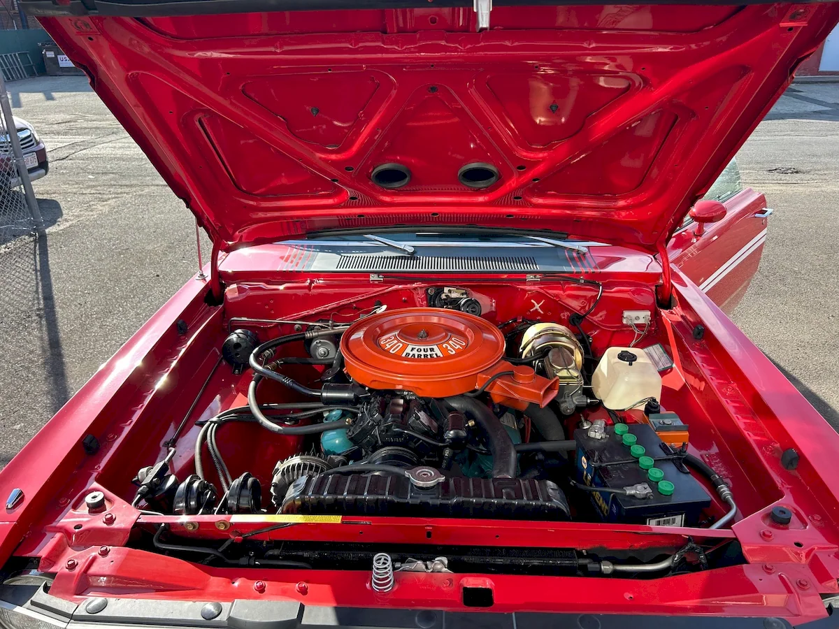 Under the hood sat Chrysler’s lively 340 small-block, paired as standard with a floor-shifted A-230 three-speed manual. Many buyers, however, upgraded to the tougher A-833 four-speed or the TorqueFlite 727 automatic for added performance and durability.