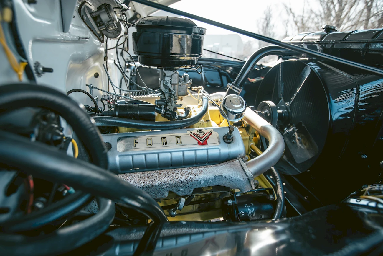 A professional restoration, according to the listing, made it worthy of an AACA National First Prize, “an award that speaks volumes about its authenticity, fit and finish, and overall presentation.” Beneath the hood sits a rebuilt 272ci V8 engine, delivering “the classic sound and feel only a vintage Ford Y-block can.”