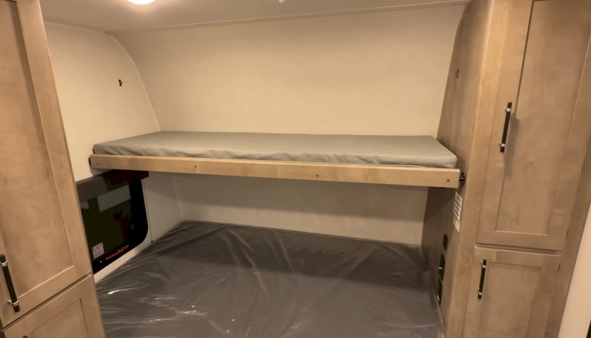 The fold-away bunk is a nice touch. It gives you flexibility—bring a kid along when needed, or just use the extra space for storage when traveling solo or as a couple. Compared to fixed bunk setups, this design makes moving around the camper feel a lot less restrictive.