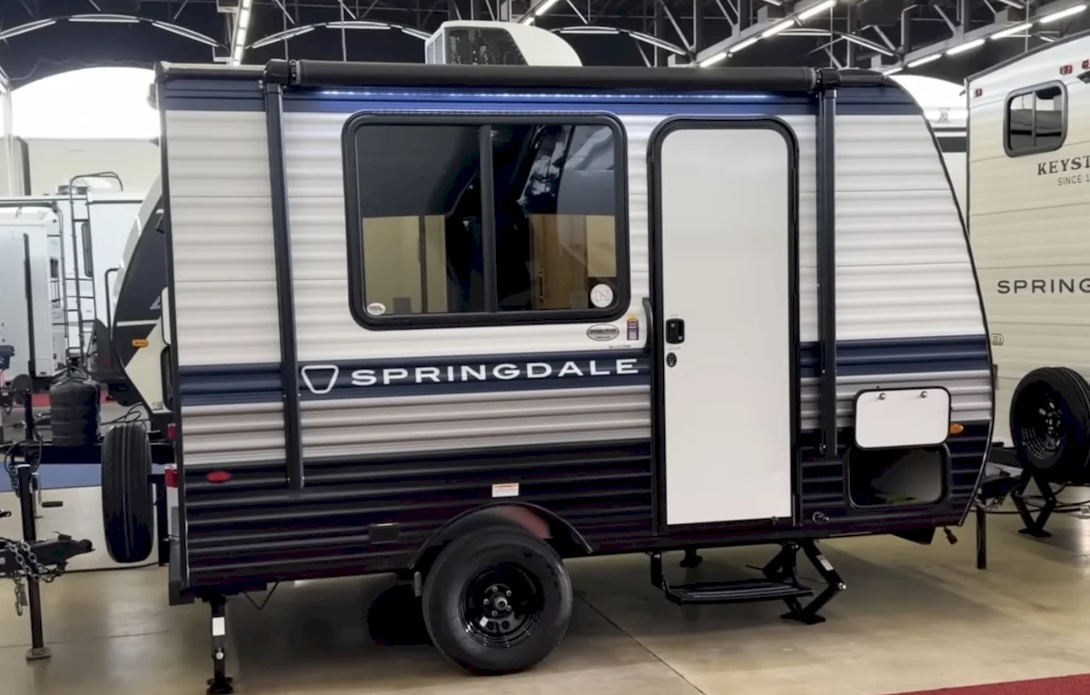The model is called the Keystone Springdale Mini 1310RK, part of the lightweight Springdale Mini lineup. It’s designed for folks who don’t necessarily own a full-size pickup. The 2026 version comes in with a dry weight of just 2,720 lbs, making it towable for a wider range of vehicles. Keystone boldly calls it the “Best Floorplan Ever,” though that’s always going to depend on personal taste.