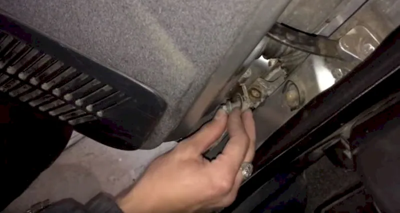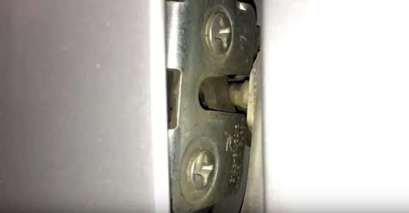 The first method is adding washers to the lower hinge. Start by removing the bolt (or bolts) that hold the lower door hinge in place. Be prepared—it might take some force, so using a socket wrench is your best bet. Before loosening anything, open the door fully and brace it with your knee at the bottom corner to keep it from shifting.