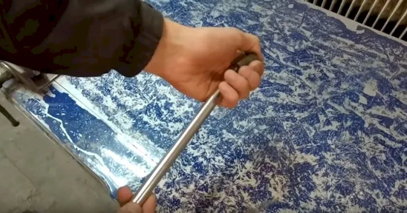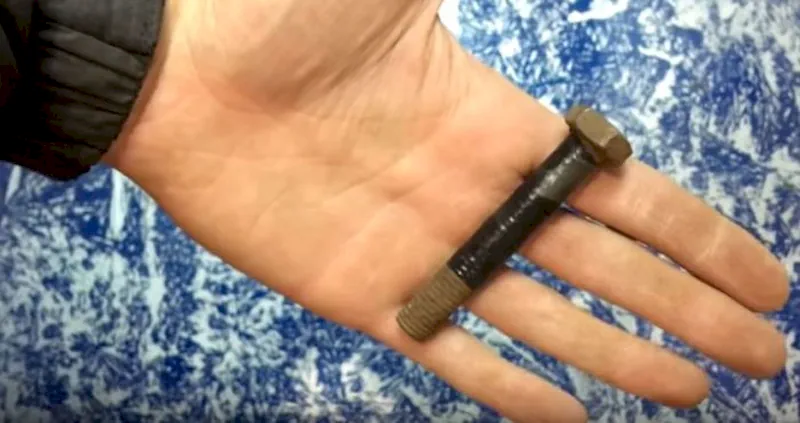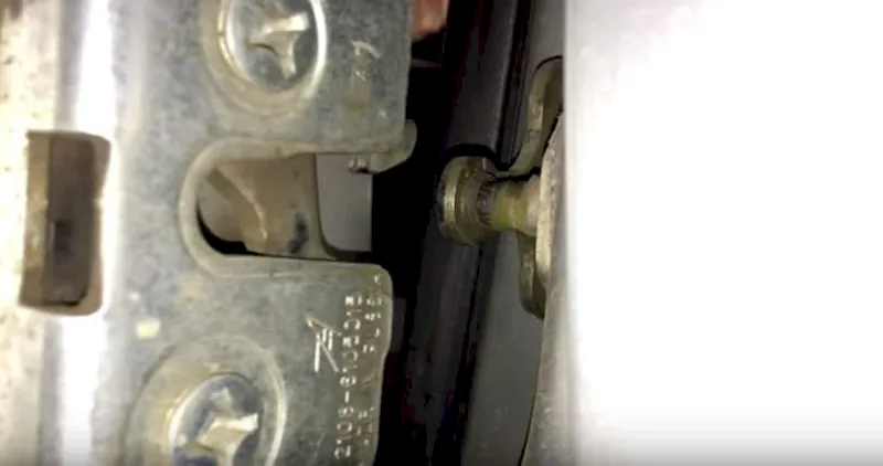 The second option involves slightly bending the lower hinge back into position. For this, you’ll need a bolt roughly 3/8 to 9/16 inch in diameter (equivalent to M10–M14). Wrap the middle of the bolt with electrical tape to protect the metal, then place it near the lower hinge and carefully close the door against it. This forces the hinge to adjust its angle.