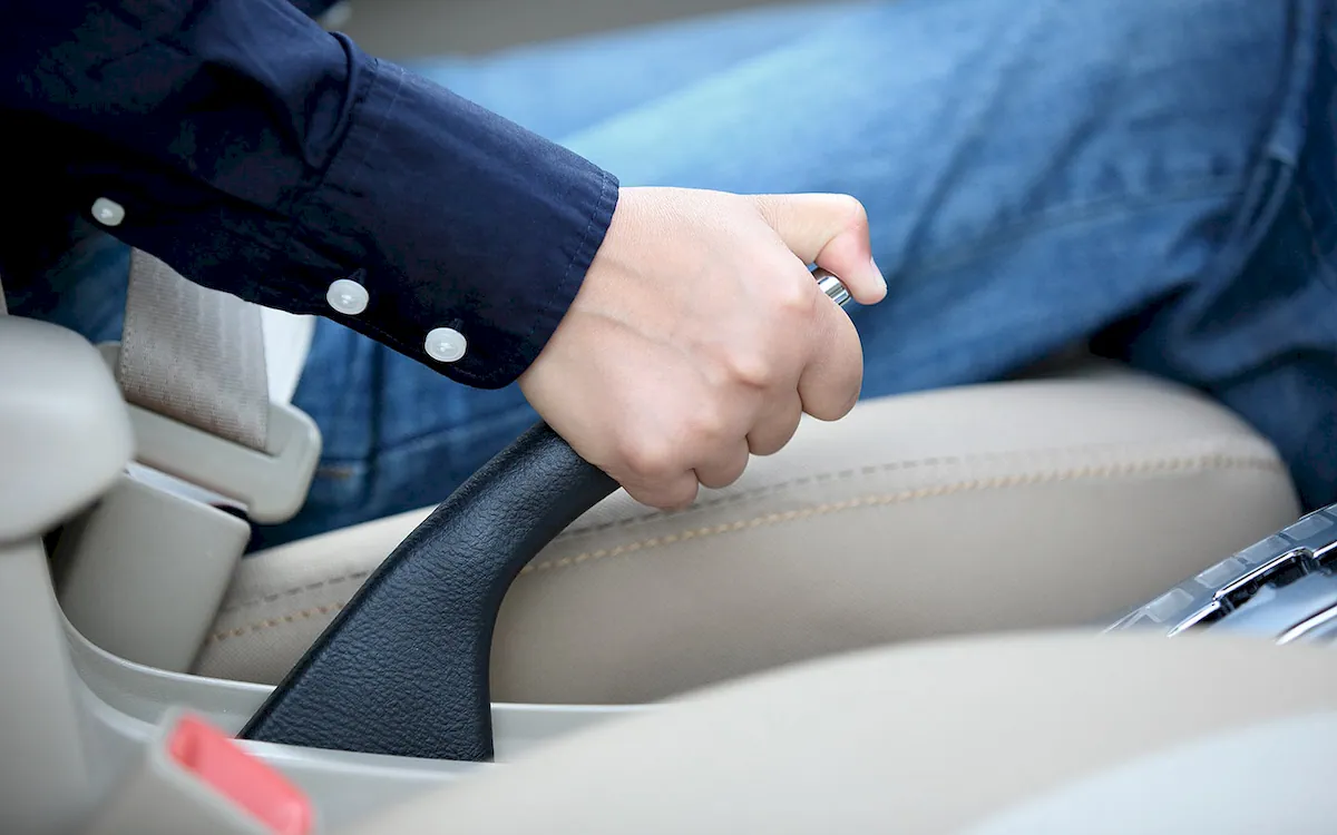 The parking brake can also help slow the vehicle, but it must be used carefully. This works best with traditional mechanical parking brakes because they allow better control over braking force. Pulling the brake too sharply may lock the rear wheels and cause the vehicle to skid—especially on wet or slippery roads.
