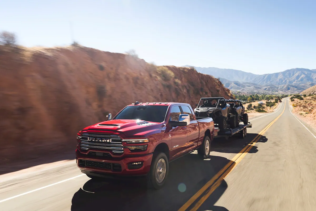When equipped with the optional Cummins turbo diesel inline-six, the Ram 2500 can tow up to 20,000 pounds. That engine delivers 430 horsepower and up to 1,075 lb-ft of torque under optimal conditions, giving it strong performance in its class.