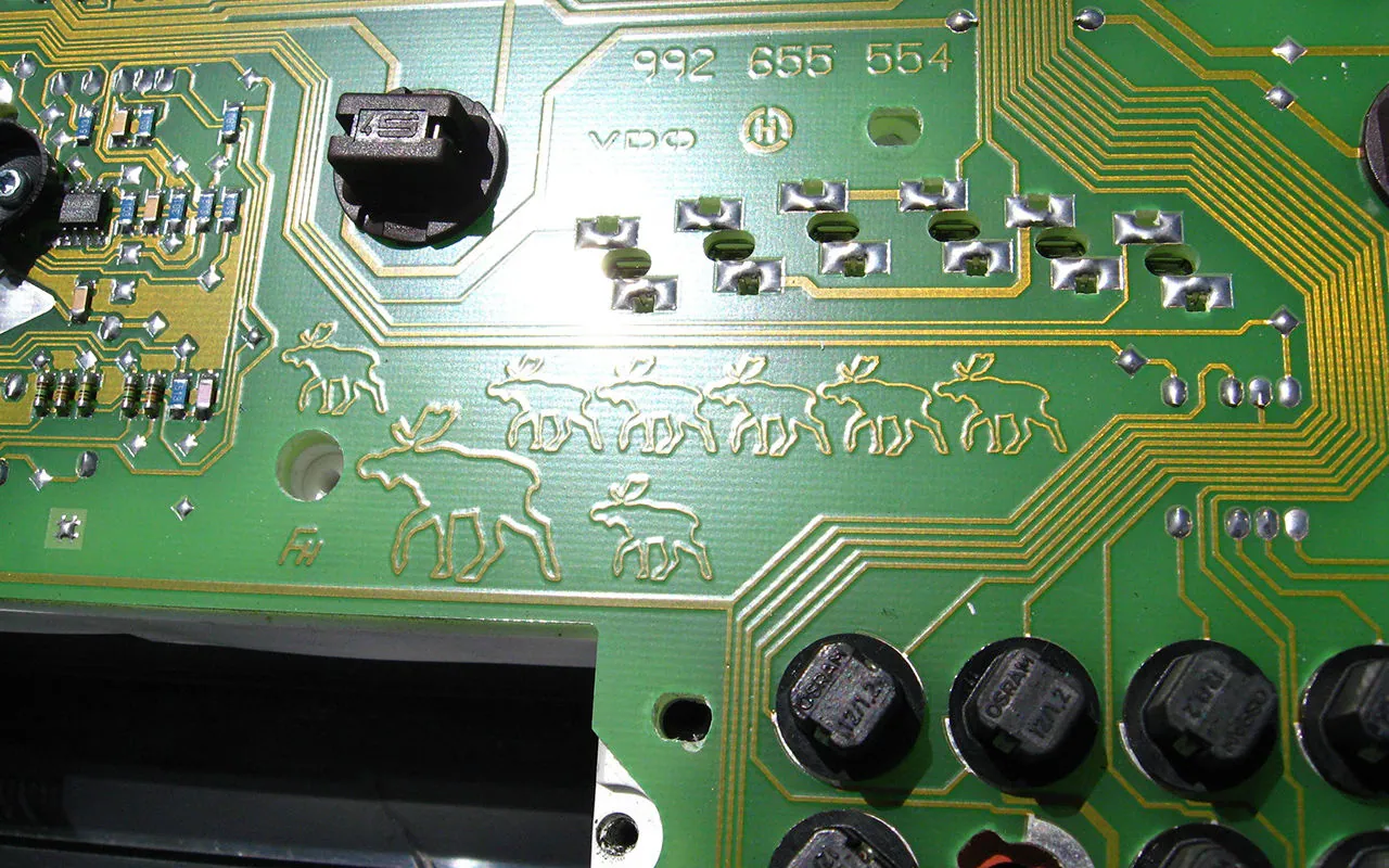 Swedish automaker Volvo added its own touch of personality—and maybe a bit of humor. On the circuit board inside the instrument cluster of the Volvo 850, engineers included tiny moose illustrations, a nod to one of Sweden’s most recognizable animals.