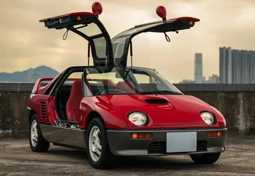 It features a mid-engine, rear-wheel-drive layout and a turbocharged 657 cc Suzuki-sourced engine producing 64 horsepower. Its standout feature? Dramatic gullwing doors.
