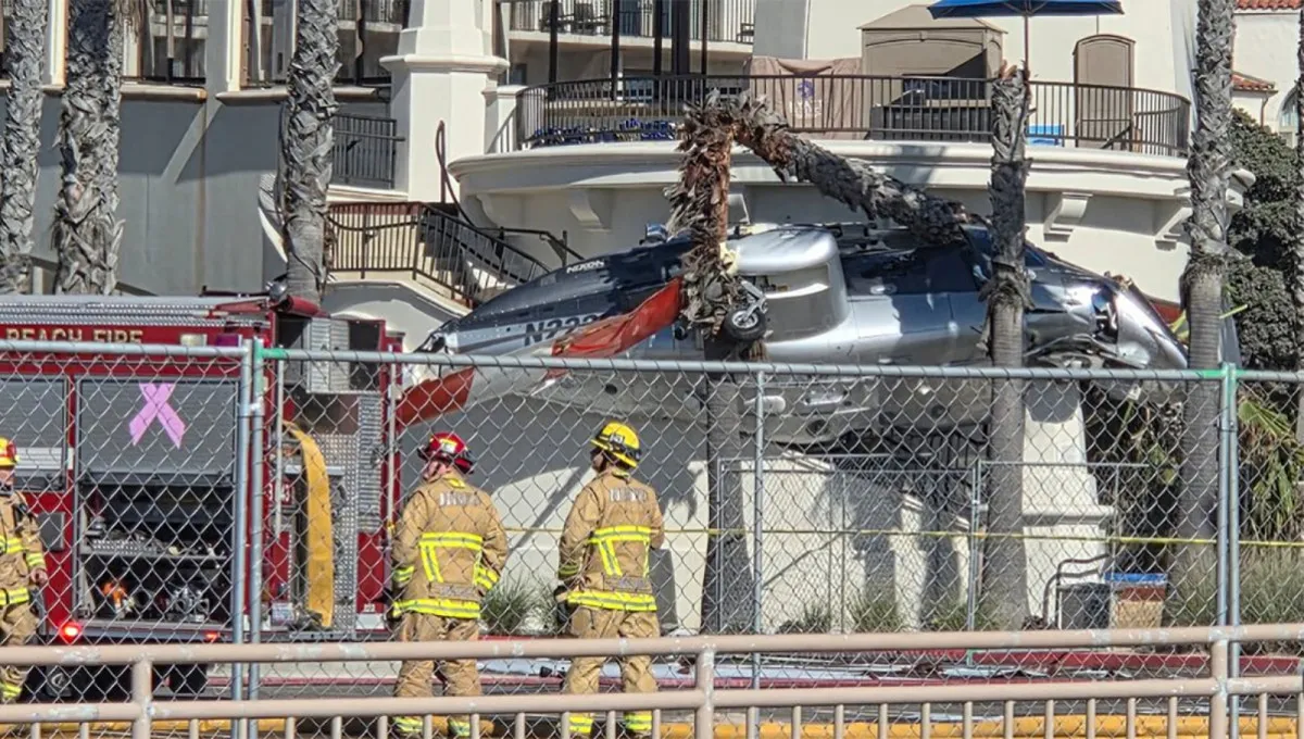In Huntington Beach, California, a helicopter crashed directly onto a beachside parking lot.