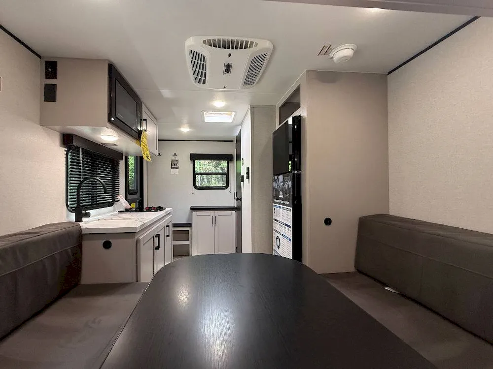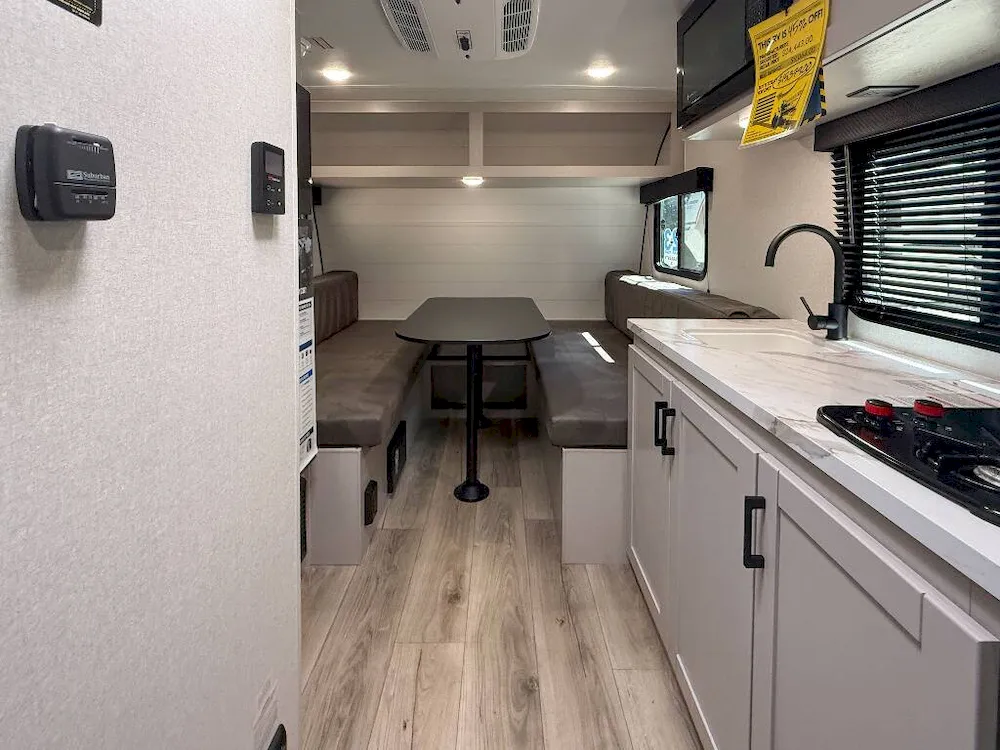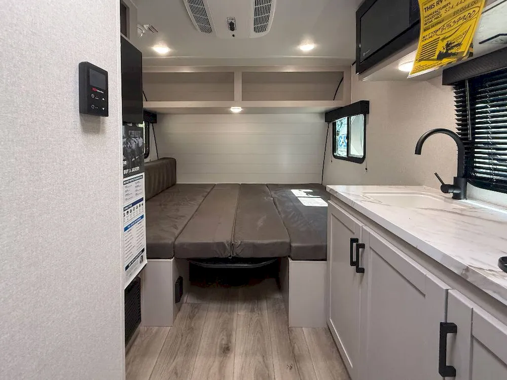 The newest and most compact model carries the name 15TBSL. According to Jayco, it’s the lightest and smallest in the entire lineup. Its mission: to pack all the essentials of a full-size travel trailer into the most space-efficient design possible. It’s made for travelers who value mobility but aren’t willing to sacrifice comfort.