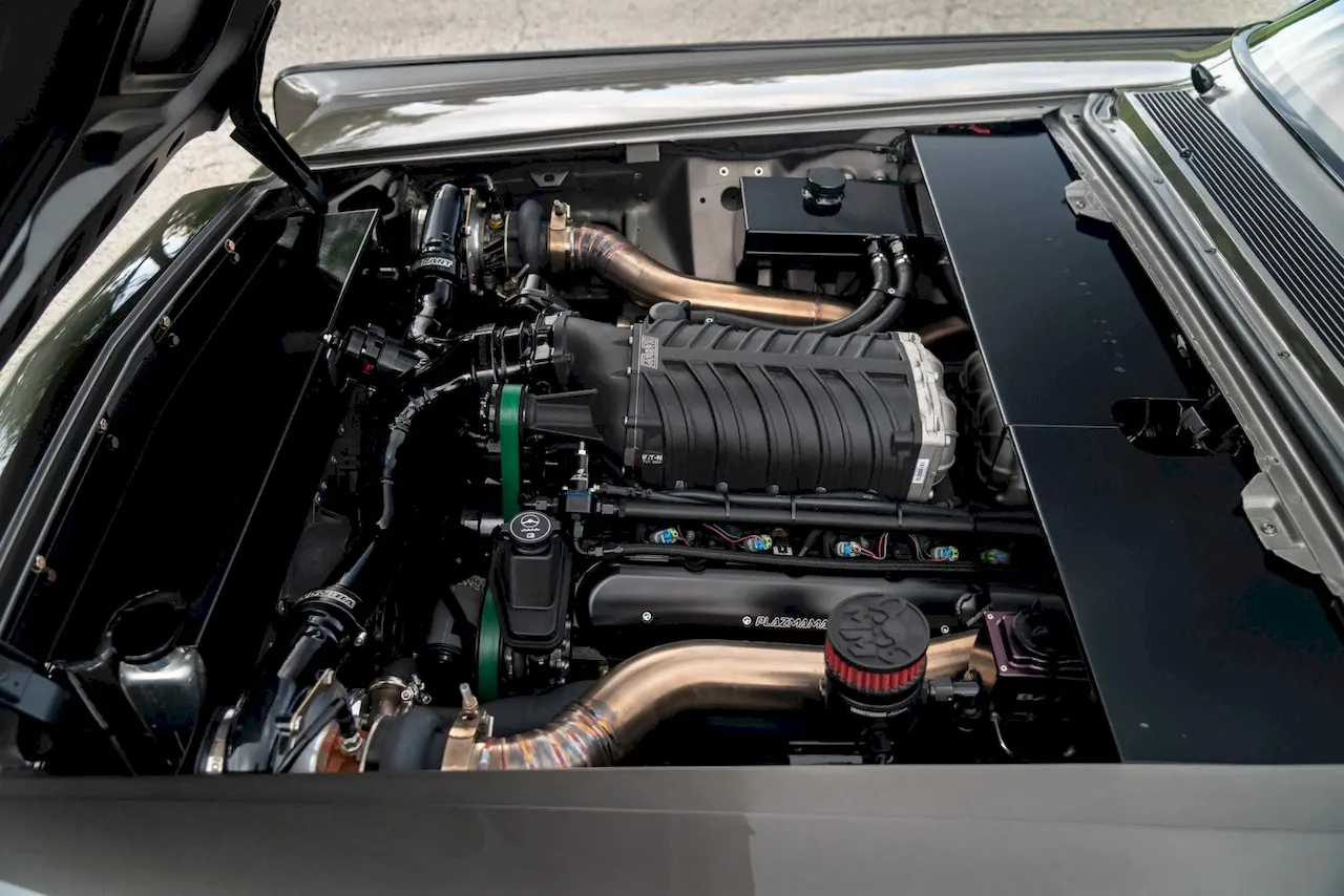 Under the hood? Forget the old MEL V8. Instead, there’s a 6.2-liter LSx V8 built by Koza Automotive in Illinois. Forged internals, a BTR Stage 3 camshaft, twin turbos, and a Harrop supercharger push this beast to 871 horsepower and over 1,000 lb-ft of torque—numbers that make a modern Maybach look tame. Power goes through a 4L80E automatic to a nine-inch rear end.
