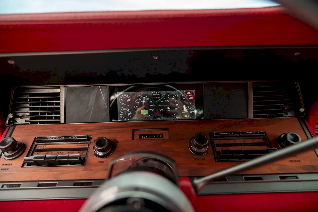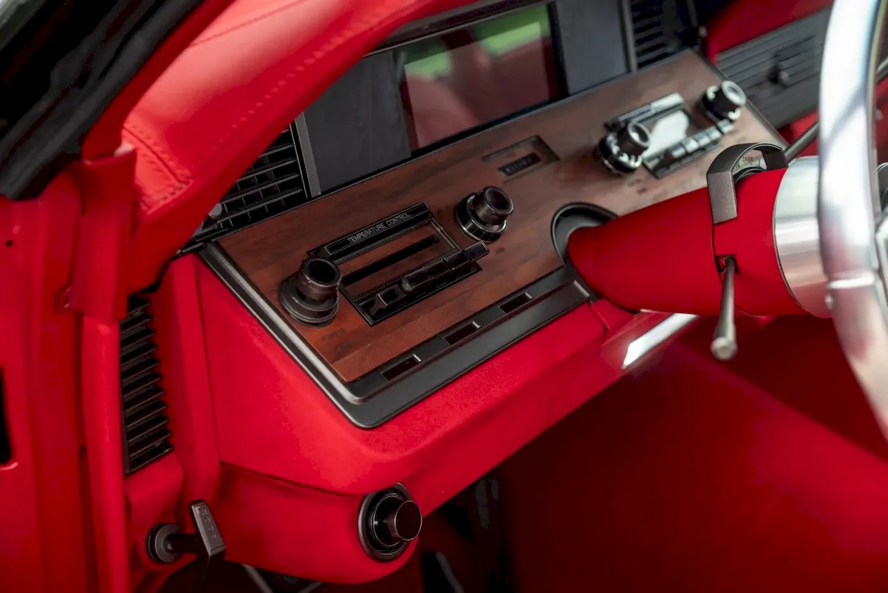 The car rides on Devious Customs’ air suspension with Baer six-piston brakes up front, giving it modern control without losing its old-school cool. Inside, deep red leather and polished chrome meet digital gauges and billet-steel details—a blend of classic style and modern comfort that wouldn’t feel out of place in a Bentley.