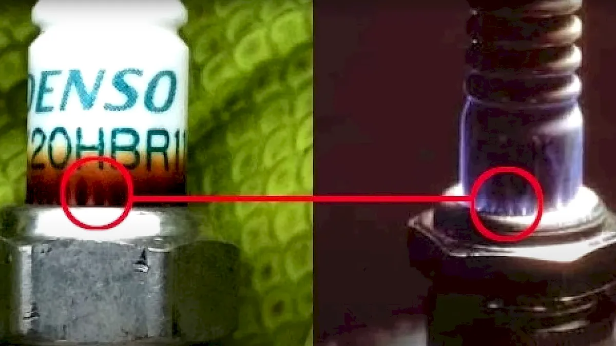 Corona discharge usually appears on engines with 16 valves, where the spark plugs sit deep inside narrow wells and are covered on top by ignition coils. Since the space around the plug is sealed, the air inside gets ionized by the high voltage passing through the plug. This creates a faint bluish glow — like a tiny electrical halo — around the top of the insulator.