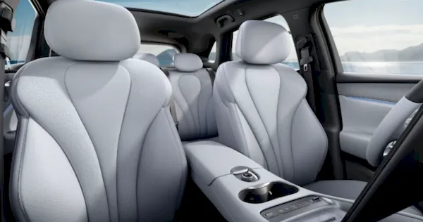 Inside, buyers get a 15.6-inch “floating” infotainment touchscreen, a digital instrument cluster, ventilated front seats, and a panoramic sunroof with a moonroof. Cargo capacity reaches 57.5 cubic feet (1,630 liters) with the rear seats folded.