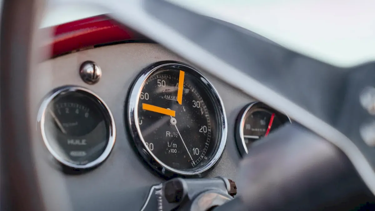 This particular 200SI’s body was restored and repainted in its current bright red shade some time ago. In the 1960s, the chassis was fitted with a Chevrolet engine, which was later replaced by a European inline-four with an aluminum block, twin carburetors, and a dry-sump lubrication system — a larger unit than the original Maserati powerplant. The seller notes that the original engine will be included with the sale.