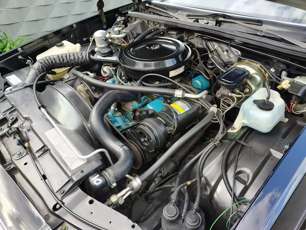 Step inside, and you’ll feel like you’ve entered a time capsule. Everything appears untouched—no wear on the seats, a dashboard that looks factory-fresh, and even the cigarette lighter has never been used. Factory options include air conditioning, an AM/FM radio, and manual windows. Under the hood sits a classic 5.0-liter American V8 paired with a three-speed automatic transmission.