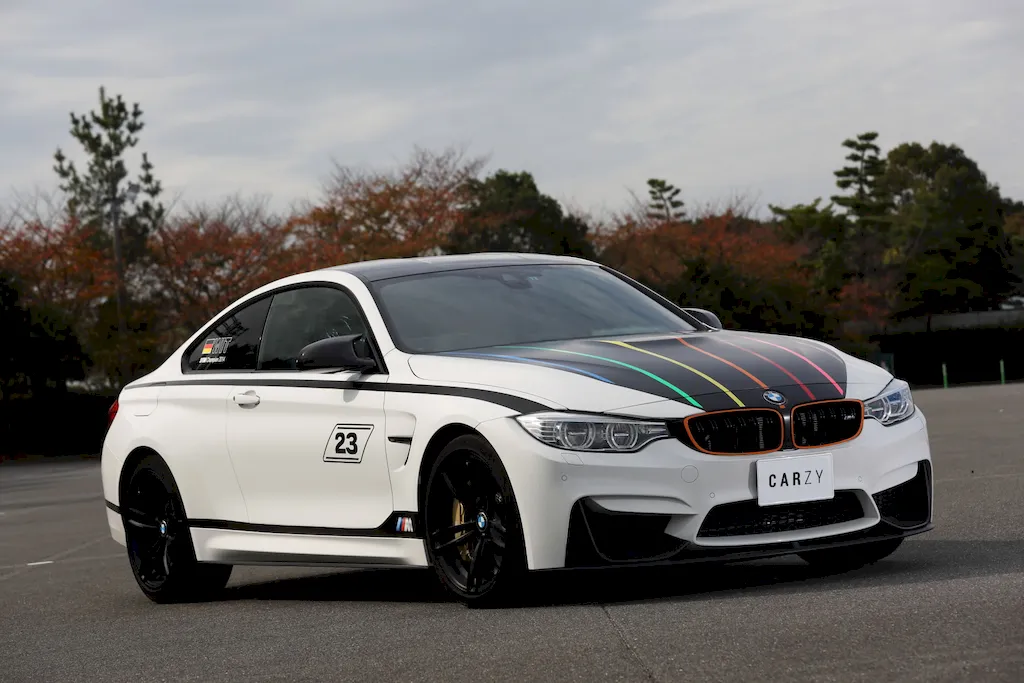 The exterior proudly shows off its motorsport DNA: Alpine White paint with bold color accents, recalling iconic BMW race livery.