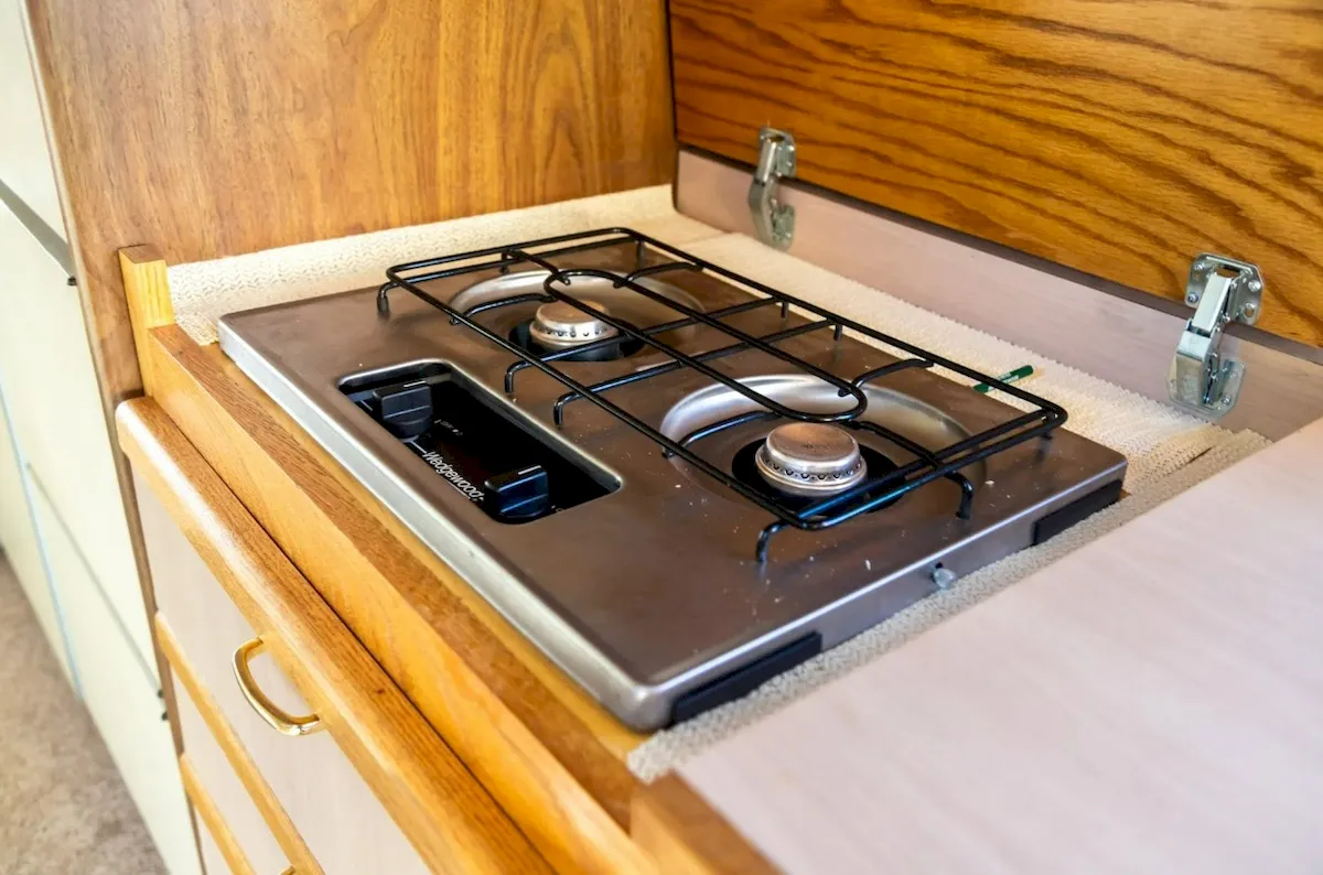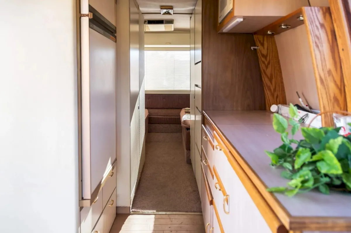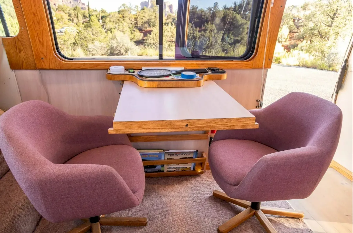 Though the RV includes modern updates like motion-activated lighting, a Bluetooth Alpine stereo, and dual AC units, they’re integrated in a way that keeps the vintage vibe intact.