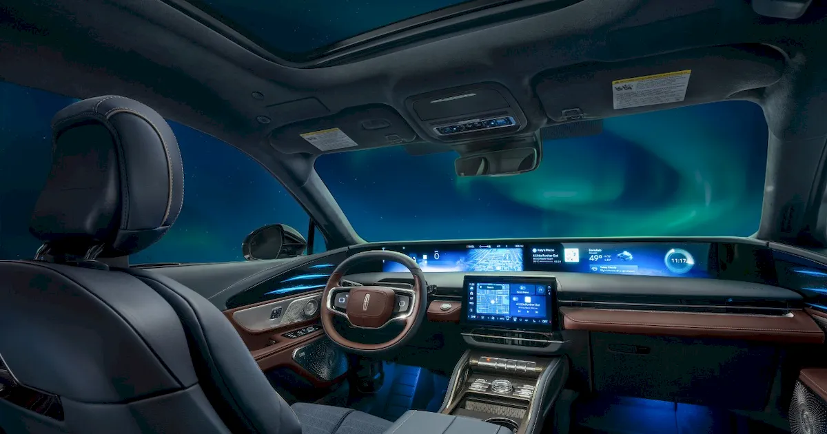 To deepen the effect, Lincoln has added Mahogany Red accents and real wood veneers across the door panels, dashboard and steering wheel. And for the full “northern lights” experience, the displays can be set to show glowing shapes and shifting patterns reminiscent of the night sky.
