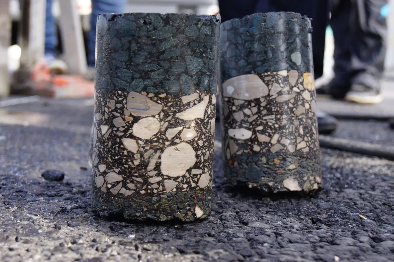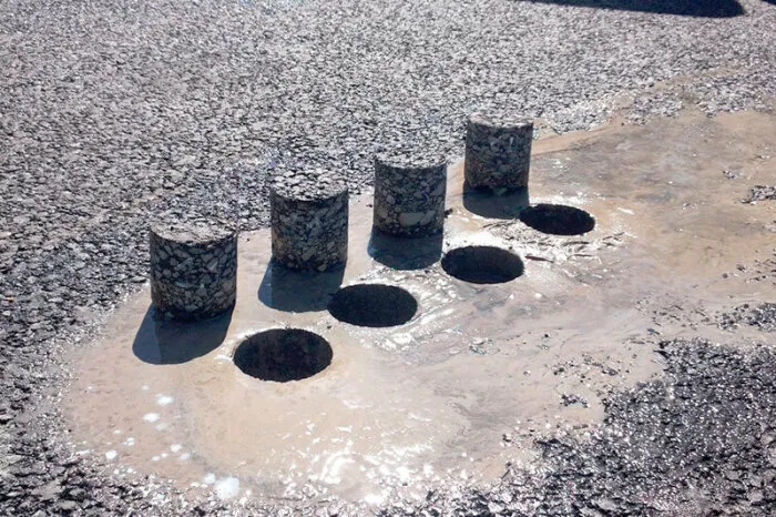 It’s a routine practice and perfectly safe for the pavement. After the cores are removed, the holes are filled with fresh material and compacted to restore the road surface.