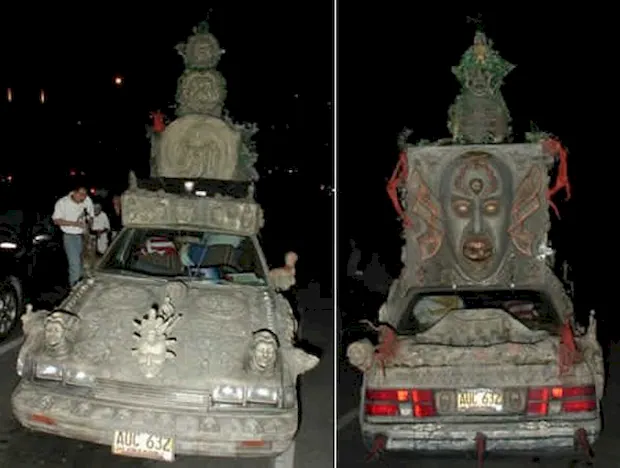 Resembling a rolling temple dedicated to some fearsome deity, this vehicle is unlikely to set any speed records—but it’s perfect for exotic ceremonies and parades.