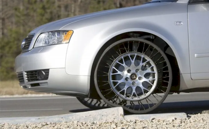 These unique French wheels were first unveiled back in 2005. Their defining feature is the complete absence of air. Traditional metal spokes are replaced by flexible polymers, eliminating the risk of punctures altogether.