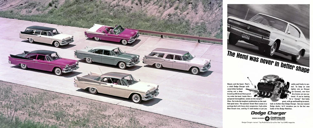 The 1958 Dodge Royal lineup—Detroit’s “baroque” era at its peak. The 1960s would usher in the muscle car era.