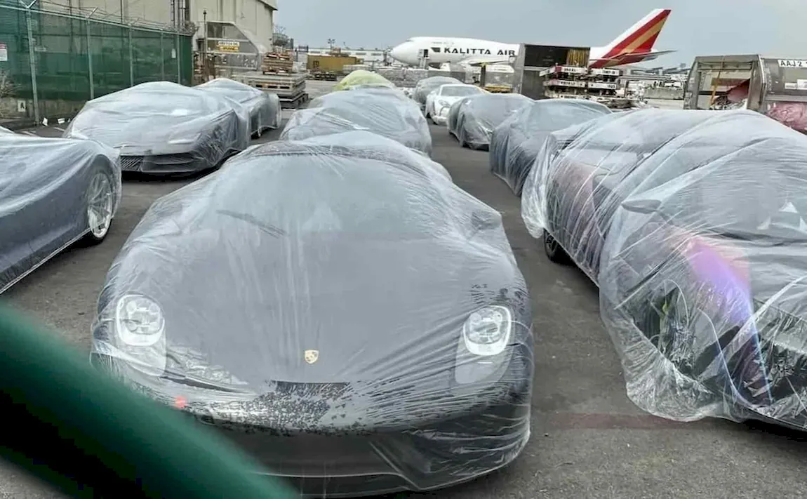 The lineup reportedly included at least a dozen supercars and hypercars — vehicles whose names alone can leave even the world’s wealthiest collectors in awe. Each car was covered with a thin plastic wrap, almost as if it were checked luggage waiting for a flight.