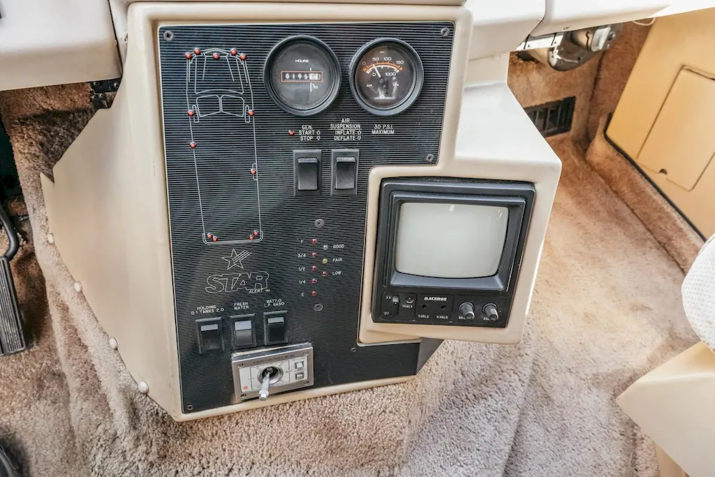 Other notable features include air conditioning and an Onan generator. From the factory, the Starfire also came equipped with a television.