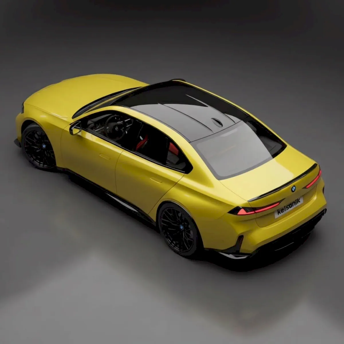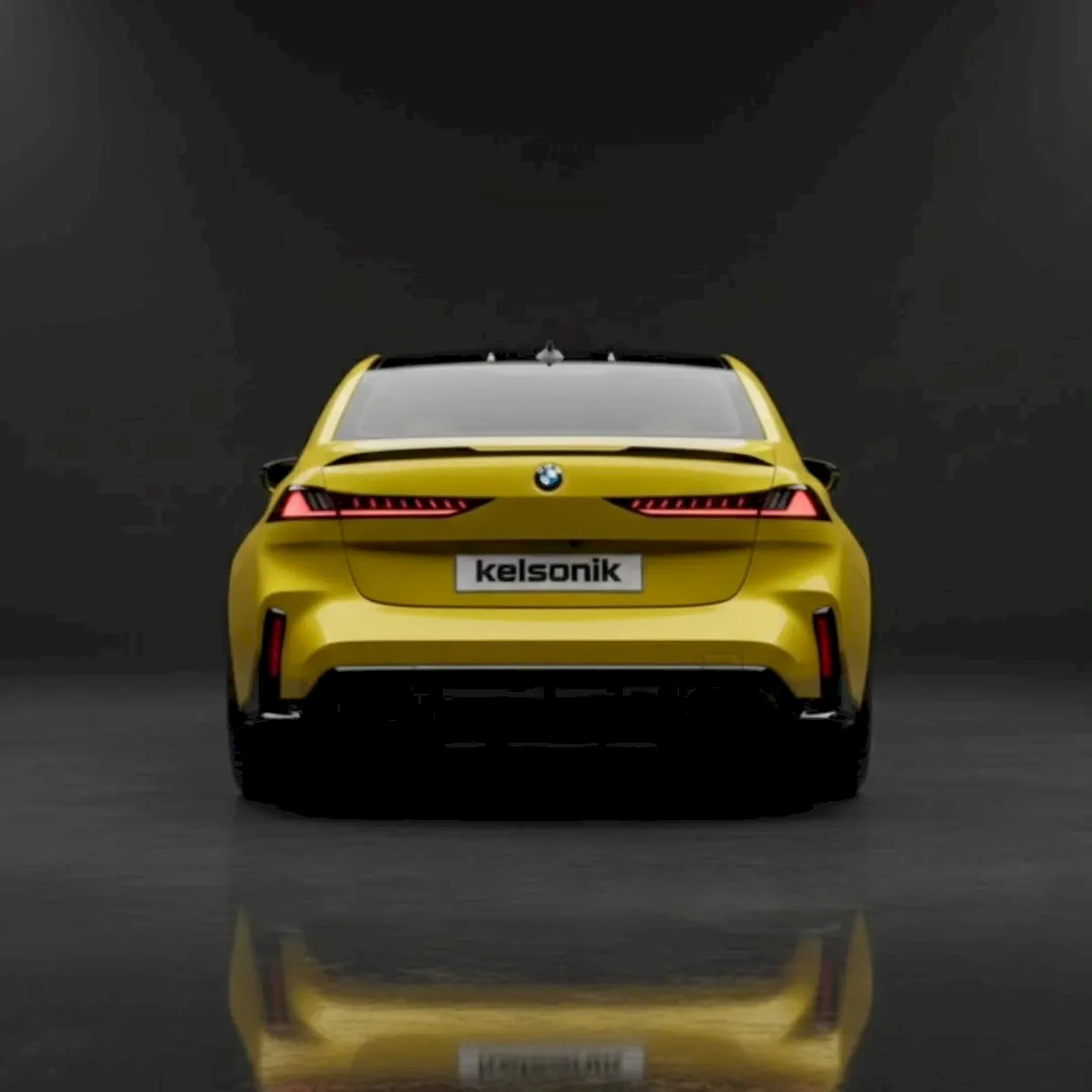 In the renderings, the future M3 is shown in a bold yellow finish paired with black accents. The roof, mirror caps, body trim, outlines, and even the wheels are finished in dark tones. The contrast sharpens the sedan’s athletic presence and gives it an even more commanding look on the road.