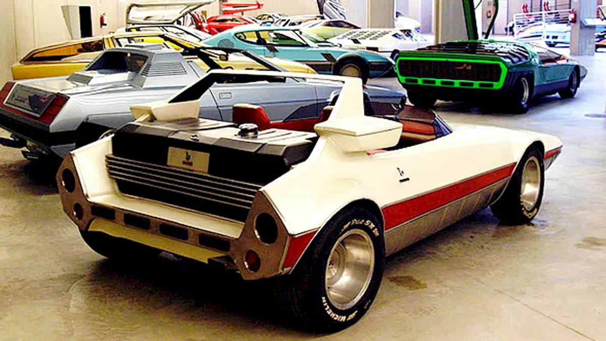 The unusual two-door concept from design house Bertone debuted at the 1969 Turin Motor Show and appears to be split horizontally by an imaginary waterline. Below that line, it resembles an amphibious vehicle; above it, a motorboat or speedboat.