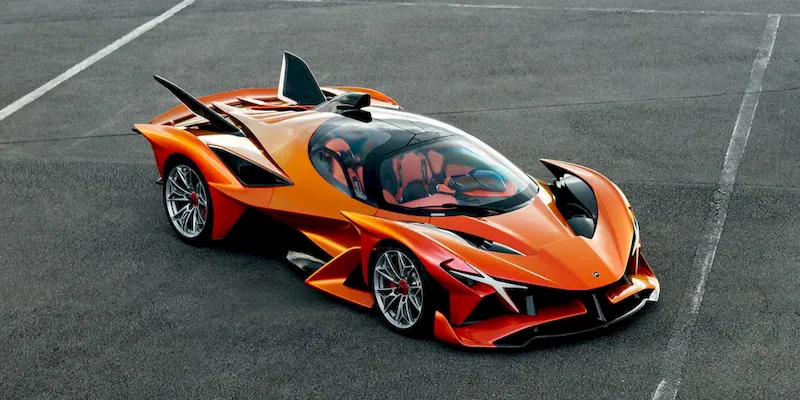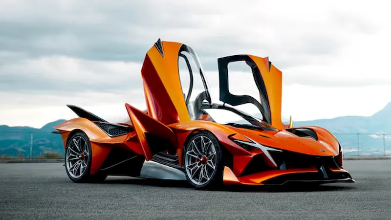 The Evo has a curb weight of just 2,866 pounds (around 1,300 kg), thanks to a carbon-fiber monocoque that weighs only 364 pounds (165 kg). The rear-wheel-drive supercar is powered by a naturally aspirated 6.3-liter V12 sourced from Ferrari, producing 800 horsepower. Power is delivered through a six-speed sequential transmission.