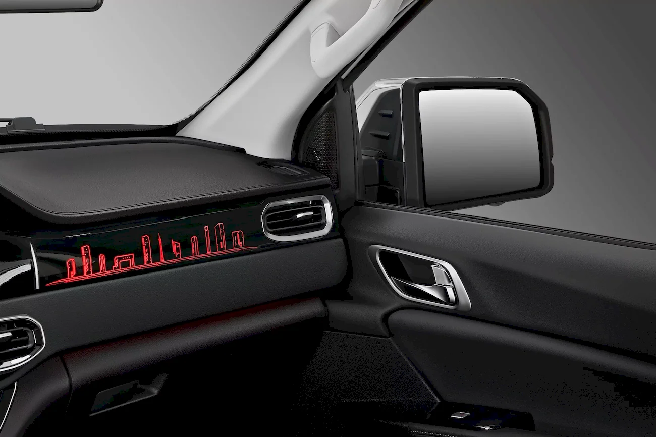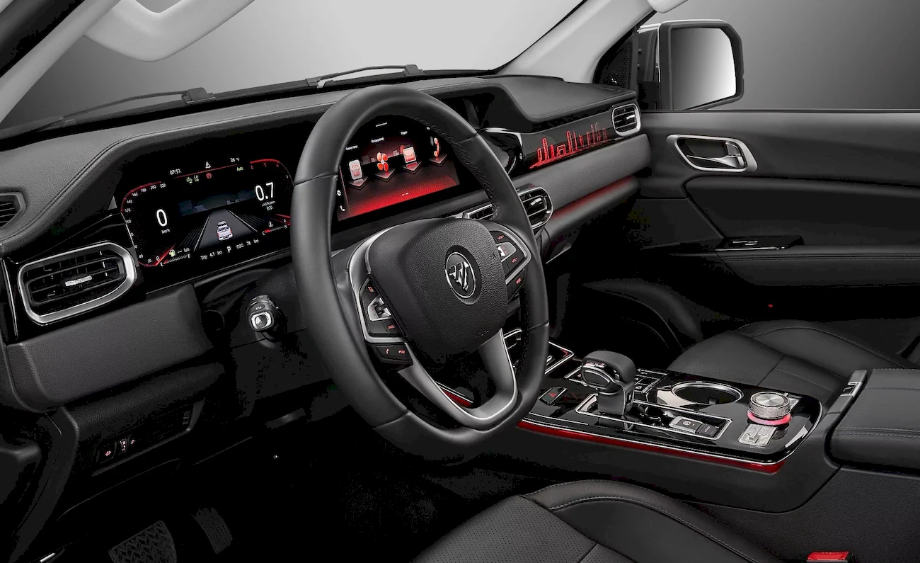 Visually, the Tunland G9 wears a bold front grille, full LED lighting, and offers several wheel designs. Power comes from a 2.0-liter Aucan turbo-diesel producing 162 horsepower and 286 lb-ft of torque, paired with an eight-speed automatic transmission. The four-wheel-drive system uses an automatic coupling and supports 2H, 4H, 4L, and Auto modes. With 8.3 inches of ground clearance and a reinforced body-on-frame chassis, the truck is well prepared for off-road driving.