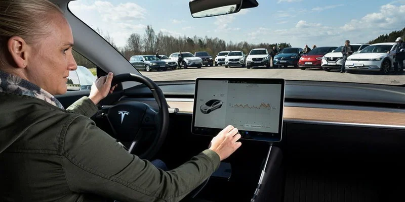 For the test, journalists gathered 11 modern vehicles — both internal combustion and electric — at an airfield. The lineup included the Tesla Model 3, BMW iX, Chinese-built MG Marvel R, Volkswagen ID.3, Dacia Sandero, Nissan Qashqai, Seat Leon, and others. As a benchmark, they also included a 17-year-old Volvo V70 with no touchscreen at all.